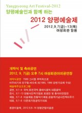 (»ç)Çѱ¹¿¹¼ú¹®È´ÜüÃÑ¿¬ÇÕȸ ¾çÆòÁöȸ(ÁöȸÀå Á¶±Ù»ó, ÀÌÇÏ ¾çÆò¿¹ÃÑ) °¡ ÁÖ°üÇÏ´Â "2012 ¾çÆò¿¹¼úÁ¦"°¡ ¿©¼ºÈ¸°ü ¾ß¿Ü°ø¿¬Àå¿¡¼ ¿À´Â 7ÀϺÎÅÍ 13ÀϱîÁö °³ÃֵȴÙ.