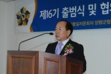 ¹ÎÁÖÆòÅë ¾çÆò±ºÇùÀÇȸ Á¦16±â ½ÅÀÓ À̼¼¿ë ȸÀåÀÌ ÃëÀӻ縦 Çϰí ÀÖ´Ù.