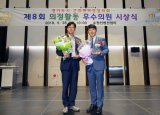 Çϳ²½ÃÀÇȸ ÀÌ¿µÁØ・Á¤º´¿ë ÀÇ¿øÀÌ 28ÀÏ ¼ö¿øÄÁº¥¼Ç¼¾ÅÍ¿¡¼ ¿¸° ¡¸Á¦8ȸ °æ±âµµ ½Ã・±ºÀÇȸ ÀÇÁ¤È°µ¿ ¿ì¼öÀÇ¿ø¡¹ ½Ã»ó½Ä¿¡¼ ¸ð¹üÀûÀÎ ÀÇÁ¤È°µ¿À» ÆîÄ£ ¿ì¼ö ÀÇ¿øÀ¸·Î ¼±Á¤µÇ¾î ǥâÀ» ¼ö»óÇß´Ù.