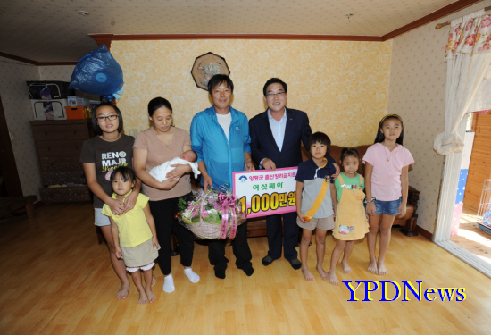 Áö³ 3ÀÏ ¼ö´É¸® ±èÀ±¼ö¾¾ °¡Á¤À» ¹æ¹®ÇÑ ±è¼±±³ ¾çÆò±º¼ö´Â 1,000¸¸¿øÀÇ Ãâ»êÀå·Á±Ý Áõ¼¸¦ Àü´ÞÇÏ°í ¿©¼¸ ¹øÂ° ¾Æ±â Ãâ»êÀ» Áø½ÉÀ¸·Î ÃàÇÏÇß´Ù.